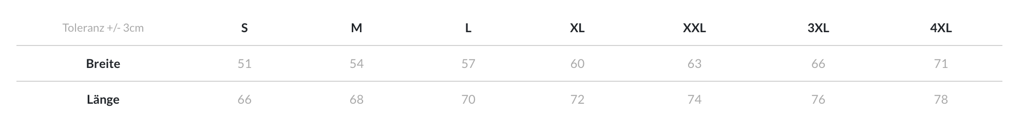 Größentabelle